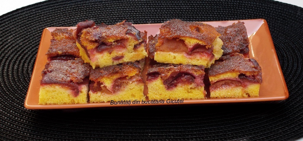 Ingrediente prăjitură din pandișpan cu prune. 1 praf de sare. Prune pere gutui struguri și mere. Se amestecă 3 linguri din zahărul brun cu scorţişoara şi se presară peste prune în.