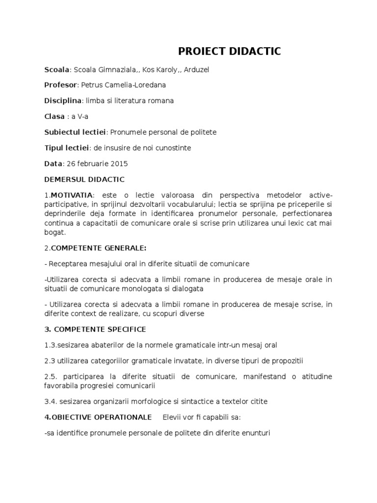 Referat Pronumele Personal De Politete 330868 Graduo