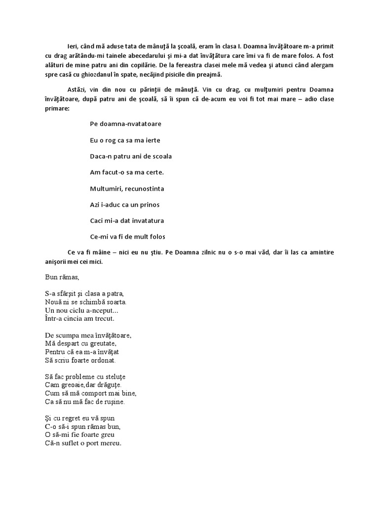 Text Rămas Bun Doamna Invățătoare Dau Coroana Brainly Ro