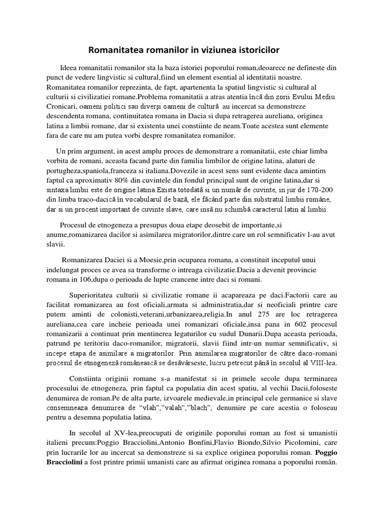 Referat Romanitatea Romanilor In Viziunea Istoricilor 326172 Graduo