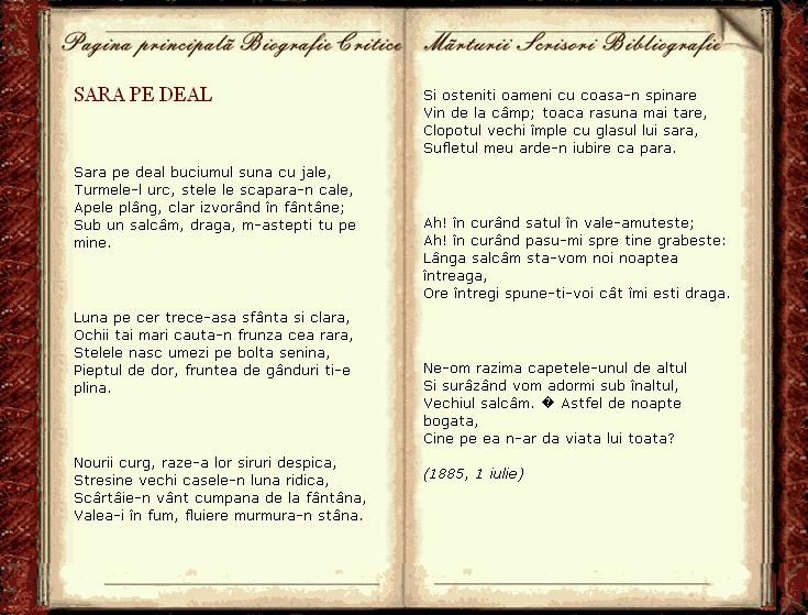 Sara Pe Deal Versuri Mihai Eminescu Conacul Cartilor Facebook
