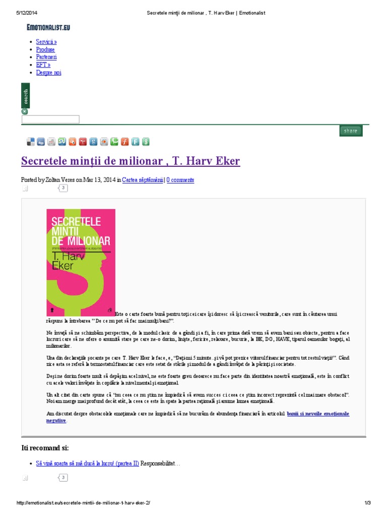 T Harv Eker Secretele Mintii De Milionar Pdf