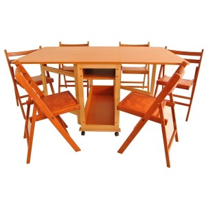 Set Masa Plianta Cu Usa Si Sertar Cu 6 Scaune Pliante Cires 1636