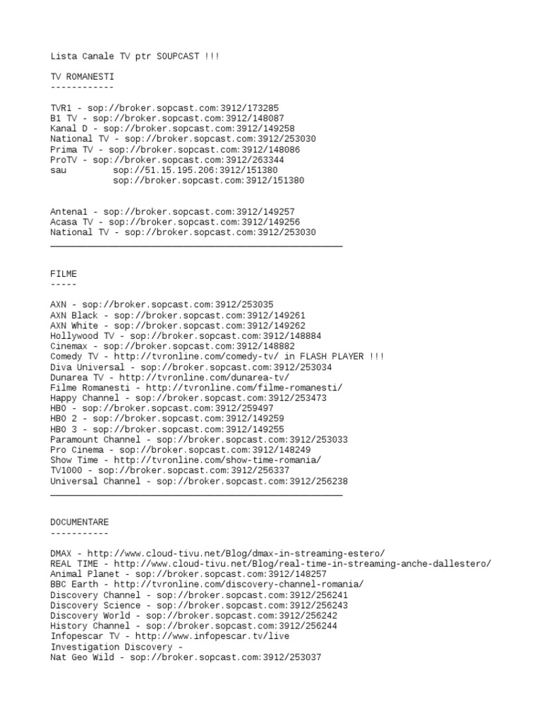 Canale Romanești Online Protocol Sopcast Valabile 01 12 2018 Tv Stream Sopcast To Android Sopcast