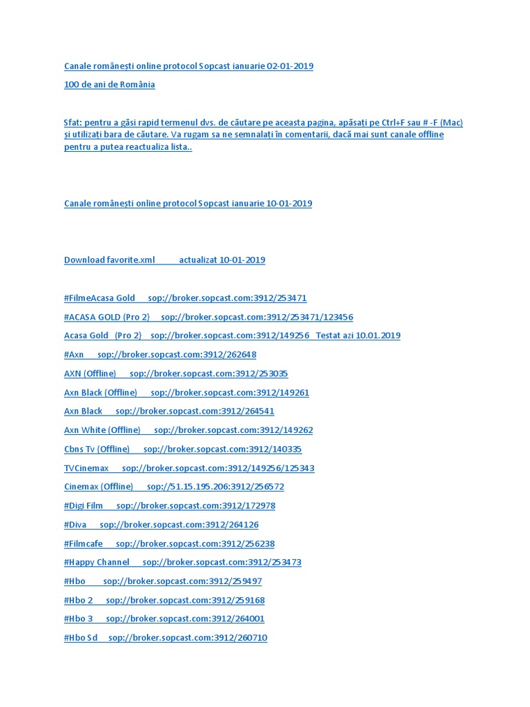 Canale Romanești Online Protocol Sopcast Ianuarie 19 02 2019 Tv Stream Sopcast To Android Sopcast