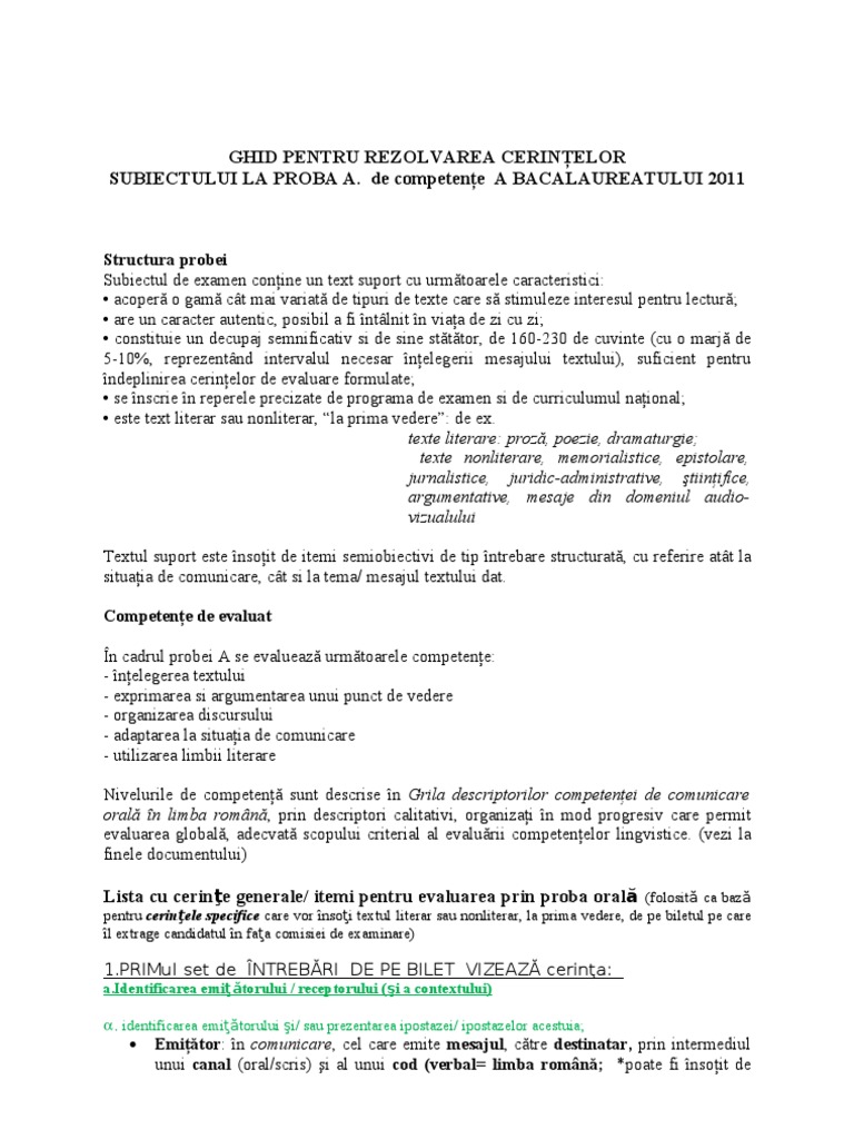 Doc De Bilete Pentru Proba Orala Bacalaureat Limba și Literatura Romană Nicoleta Enculescu Academia Edu