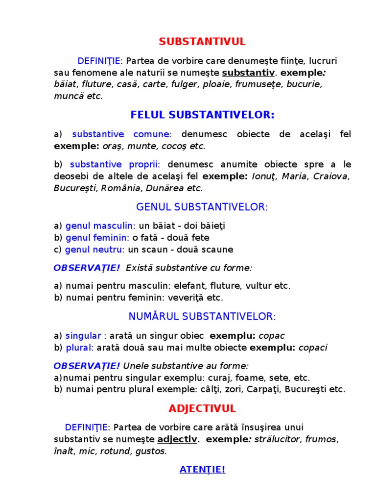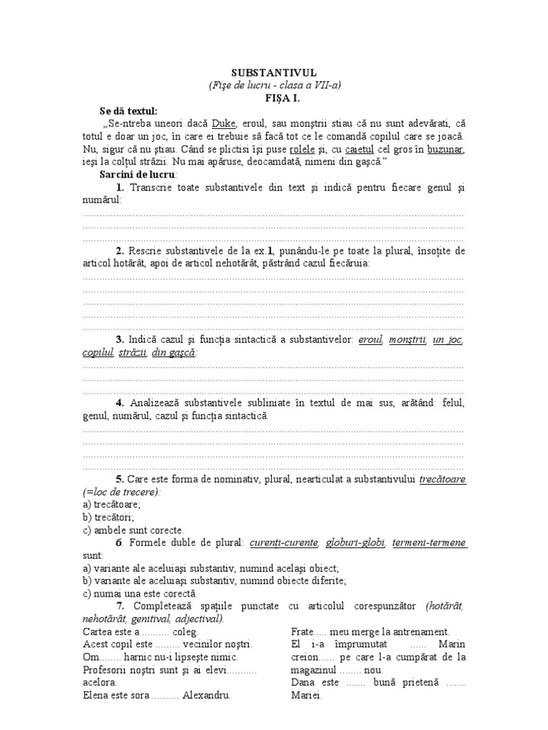 Fisa De Lucru Substantivul Si Adjectivul Doc
