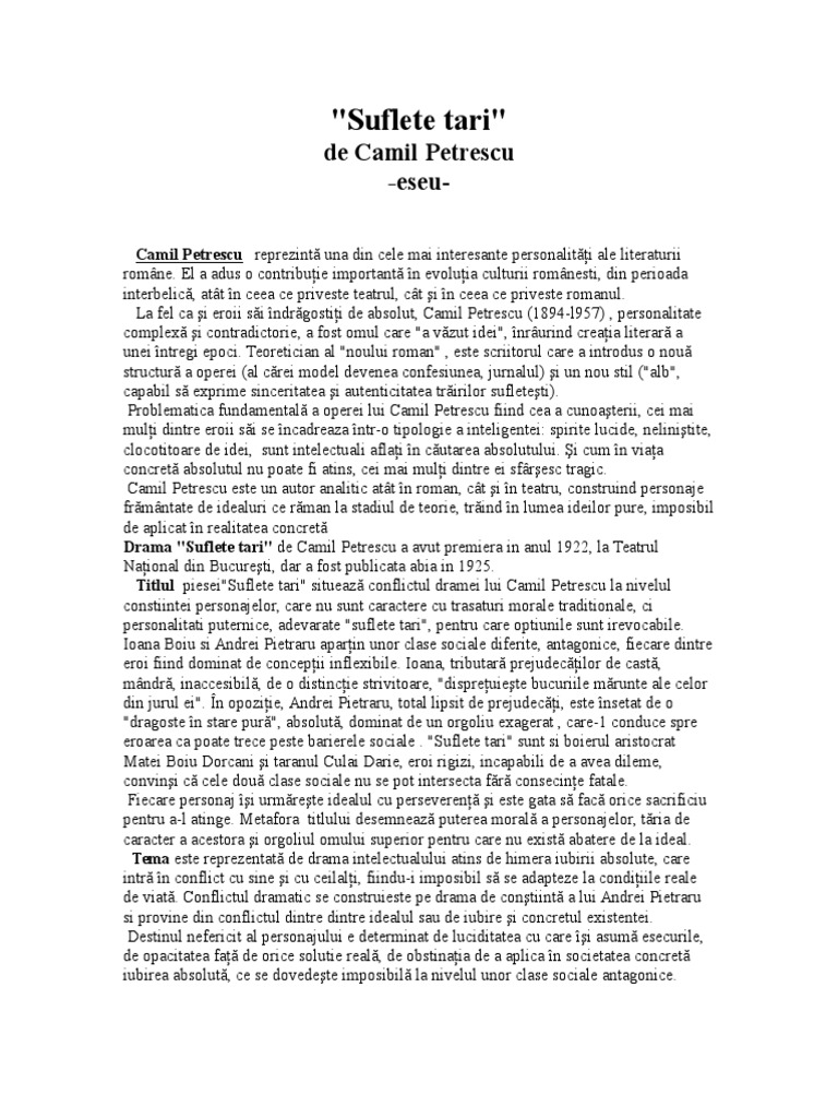 Referat Suflete Tari De Camil Petrescu Romana 232987