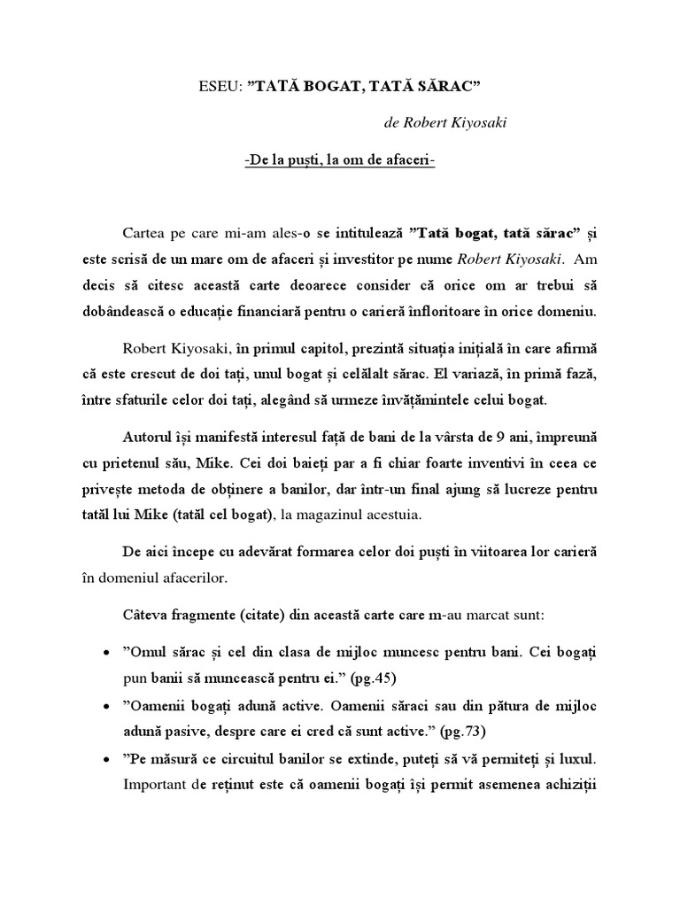 Recenzie Tata Bogat Tata Sarac Educatia Financiara In Familie De Robert T Kiyosaki