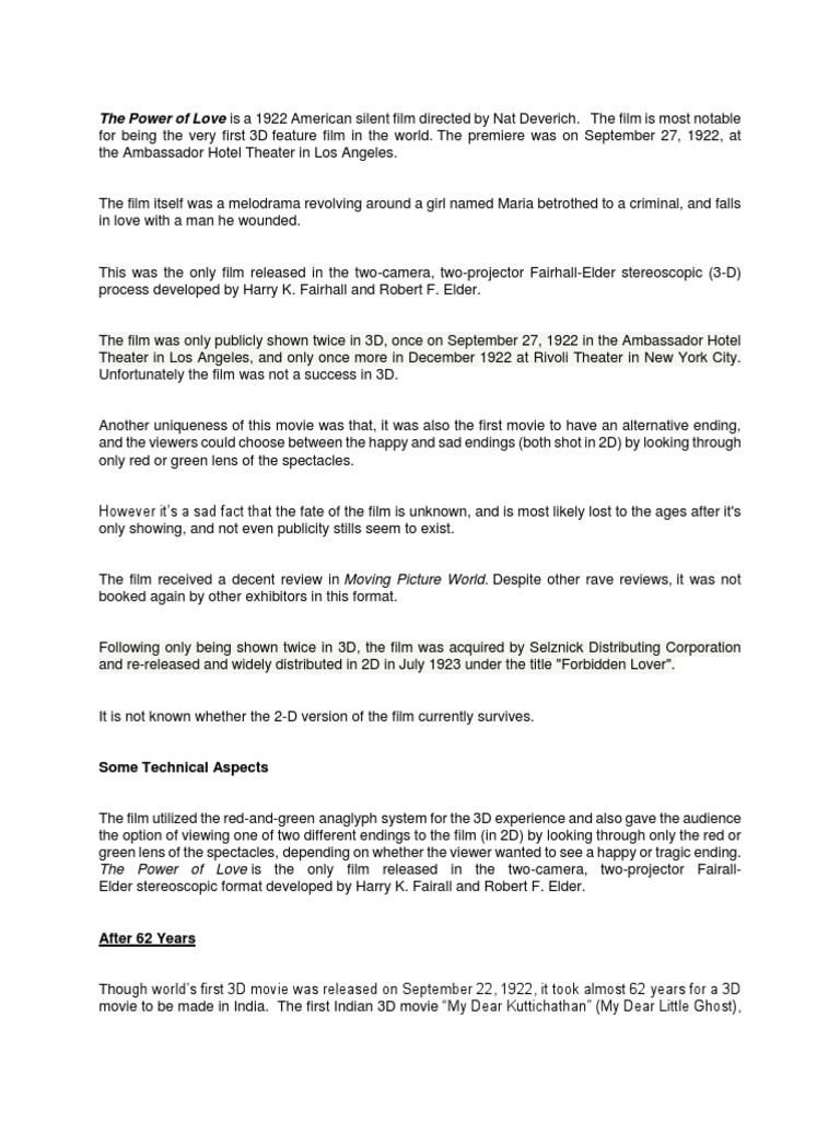 The First Ever 3d Movie Was The Power Of Love A Silent Film Released In 1922 It Was Also The First Film To Have An Alternative Ending Do You Like Alternative Endings
