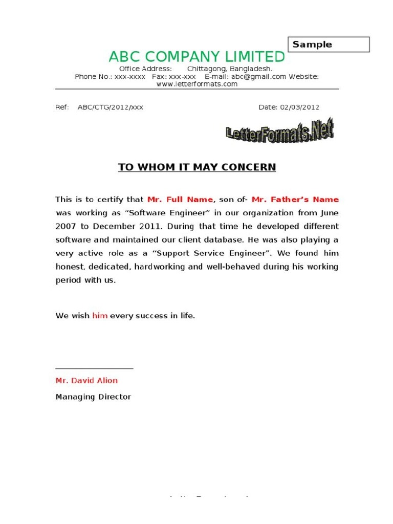 Whomsoever May Concern Experience Certificate Format Certificate Letter Format For To Whom It May Concern Converted