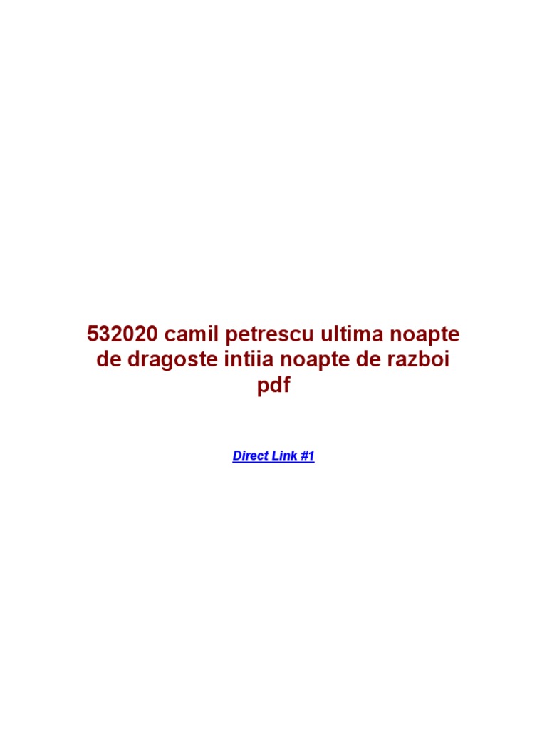 Ultima Noapte De Dragoste Intaia Noapte De Război Camil Petrescu Pdf