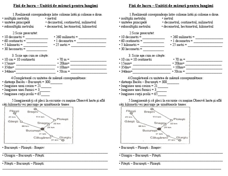 O Fisa De Lucru Unitati De Masura Pentru Lungimi