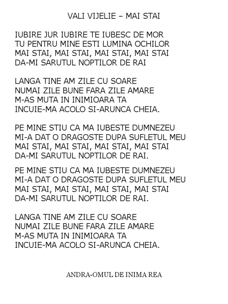 Versuri Vali Vijelie Mai Stai